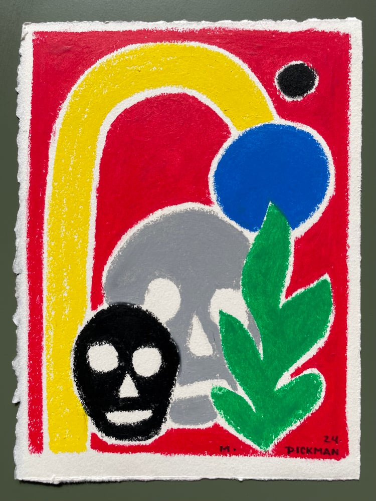 Cray-pas drawing on white Stonehenge paper. hand-torn/deckled edge (approx) 6.5 in. X 8.5 in.